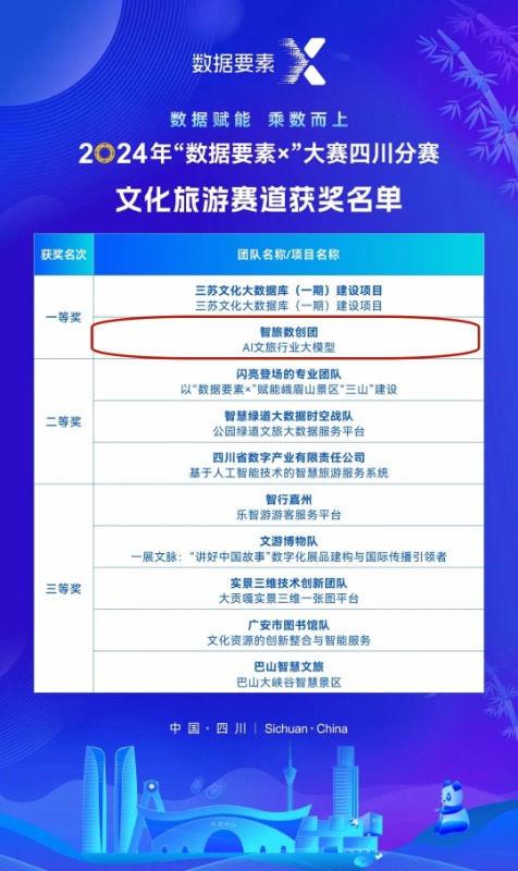 本次大賽中,川投數(shù)科(原簡稱:智勝集成)的智旅數(shù)創(chuàng)團憑借其研發(fā)的“AI文旅行業(yè)大模型”項目,榮獲“數(shù)據(jù)要素×”文化旅游賽道一等獎,后續(xù)將代表四川征戰(zhàn)全國總決賽。