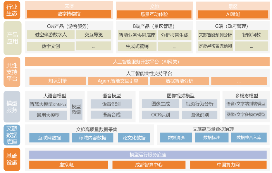 "智旅"大模型依托成都智算中心澎湃算力,構(gòu)建“智算中心+模型運行服務底座”基礎設施體系,實現(xiàn)按需調(diào)度、靈活部署,滿足文旅全場景的算力需求。