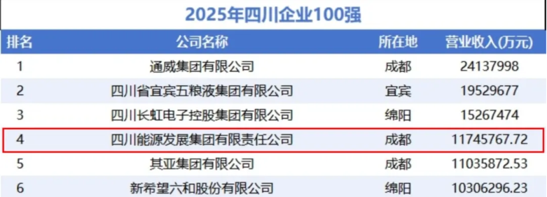 • 最新!四川能源發(fā)展集團上榜四川企業(yè)“雙百強”名單