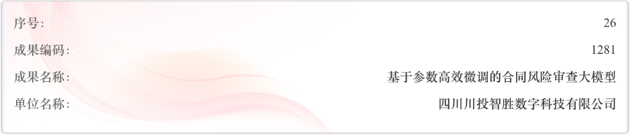 此次川投數(shù)科申報的“基于參數(shù)高效微調的合同風險審查大模型”,針對傳統(tǒng)審查模式效能低、法律環(huán)境復雜多變、傳統(tǒng)大模型應用成本高、跨部門協(xié)同困難等痛點,以合同審查為切入點,通過多源異構數(shù)據(jù)融合治理、大模型語義深度理解等關鍵技術,實現(xiàn)對企業(yè)合同風險的智能識別和預警。
