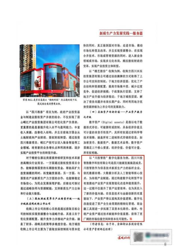 近日,國家發(fā)展和改革委員會(huì)主管主辦的國家級(jí)核心期刊(CSSCI收錄)《宏觀經(jīng)濟(jì)管理》“百城千企”新質(zhì)生產(chǎn)力發(fā)展實(shí)踐專刊正式發(fā)布,四川能源發(fā)展集團(tuán)所屬川投信產(chǎn)旗下川投數(shù)科憑借在信息技術(shù)領(lǐng)域的技術(shù)突破與實(shí)踐創(chuàng)新成功入選,作為新質(zhì)生產(chǎn)力典型企業(yè),其以數(shù)據(jù)“智”理為核心的產(chǎn)業(yè)賦能成果獲權(quán)威認(rèn)可。