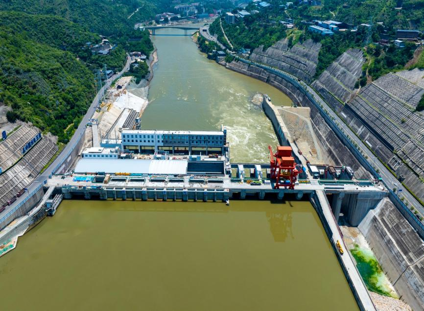 項目裝機(jī)39萬千瓦,最大壩高73米,總投資60.27億元。目前大壩廠房工程全線澆筑到頂,1~3號機(jī)組已投產(chǎn)發(fā)電,攔污柵、進(jìn)口檢修門、尾水事故檢修門已完成安裝,1~6號弧形工作門已完成安裝,正在推進(jìn)4號機(jī)組無水調(diào)試以及7號弧形工作門安裝工作。