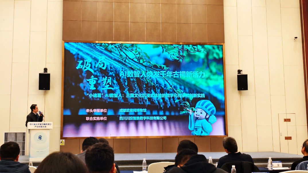 在當天下午的元宇宙專場會議上,成都武侯祠博物館黨總支副書記李龍以《破局·重塑:AI數(shù)智人煥發(fā)千年古祠新活力》為題,分享了“小諸葛AI數(shù)智人”案例的創(chuàng)新成果。他表示,該案例由成都武侯祠博物館牽頭,川投數(shù)科聯(lián)合實施,是雙方在三國文化數(shù)字化傳承與沉浸式體驗方面的一次創(chuàng)新實踐,也是元宇宙技術(shù)與文博產(chǎn)業(yè)深度融合的積極探索。