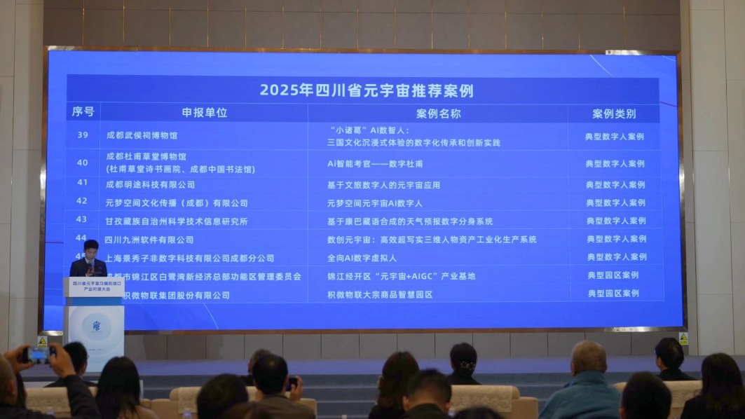四川省經(jīng)濟和信息化廳二級巡視員李文莉出席大會并指出,四川將以工業(yè)元宇宙為主線,推動新一代信息技術(shù)融合創(chuàng)新,構(gòu)建“五位一體”的產(chǎn)業(yè)生態(tài)體系。她特別提到,一批元宇宙示范應用已在智能制造、文化等領(lǐng)域落地,其中成都武侯祠博物館與四川川投智勝數(shù)字科技有限公司(以下簡稱“川投數(shù)科”)聯(lián)合打造的“小諸葛AI數(shù)智人”項目,為千年古祠注入了新的數(shù)字活力,獲批2025年四川省元宇宙推薦案例。